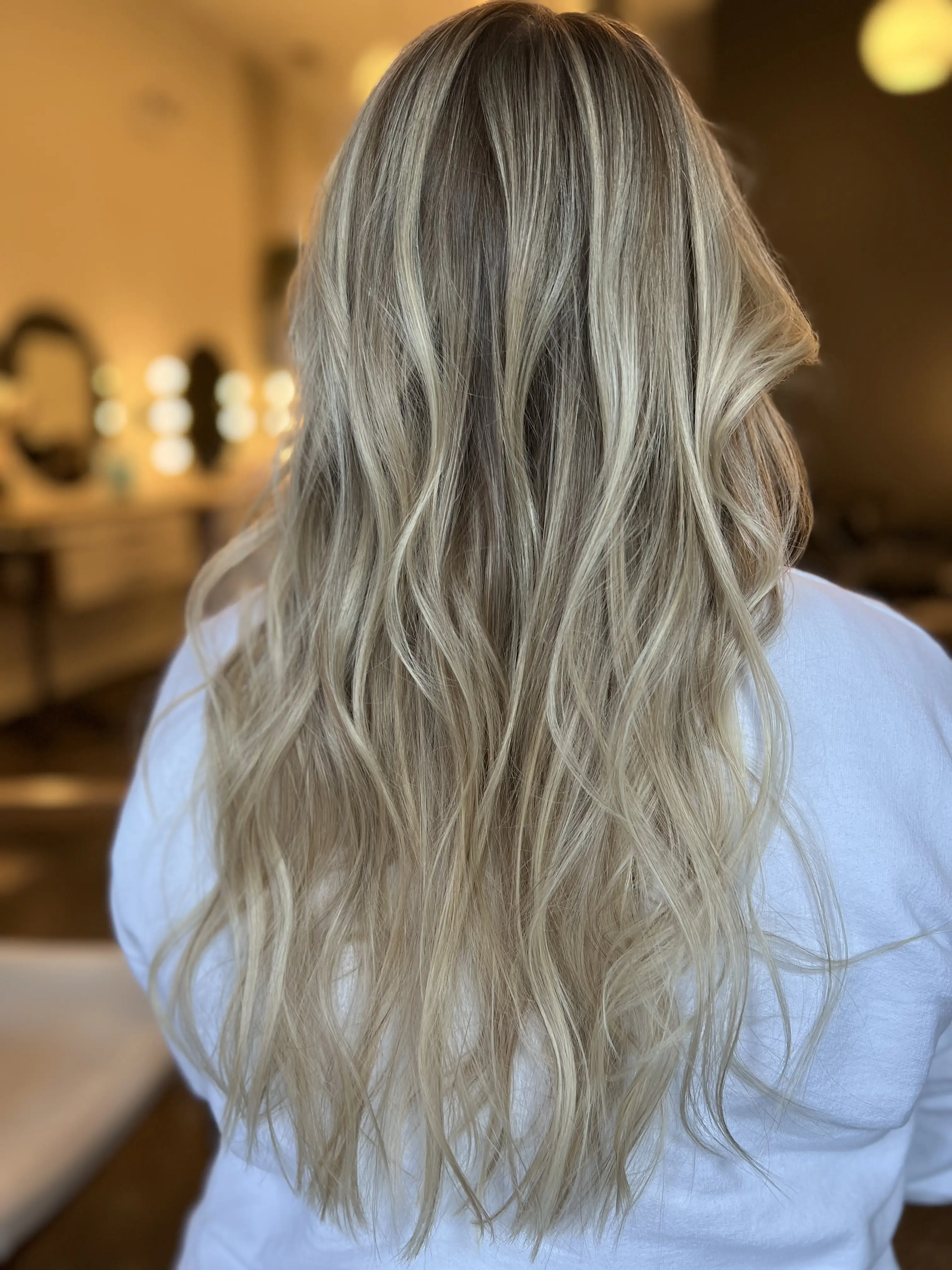This is for clients needing routine maintenance of a full highlight service designed to add brightness and dimension from roots to ends. Includes a personalized consultation, custom foil placement, toning, and a blowout.