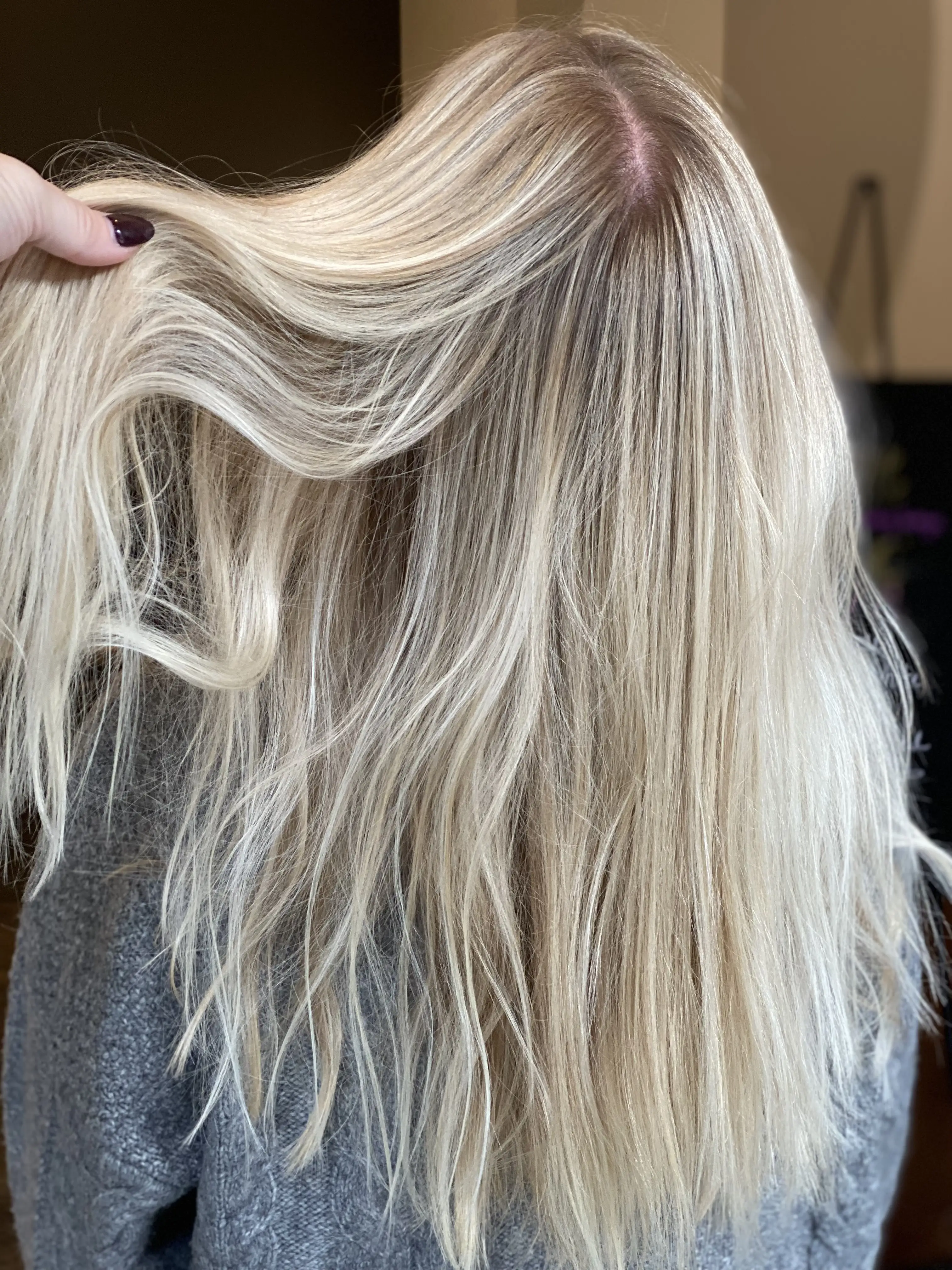 This is for clients needing routine maintenance of a partial highlight service designed to add brightness and dimension from roots to ends. Includes a personalized consultation, custom foil placement, toning, and a haircut. *For a more lived in look, please book a custom blonding service in the Lived In category